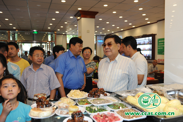 2013年以来,高端餐饮急转直下,大众餐饮增速放缓,拥有诸多餐饮老字号的北京华天饮食集团实现强势增长。为贯彻落实党的群众路线活动,深入了解企业经营成功经验,8月30日上午,中国烹饪协会苏秋成会长带领饮食文化研究会、信息部、美食营养专委会、调研统计部等部门有关人员赴华天饮食集团进行调研。华天饮食集团朱玉岭董事长、夏爱东副总经理介绍了企业经营情况,陪同考察了华天配送中心、护国寺小吃、烤肉宛。