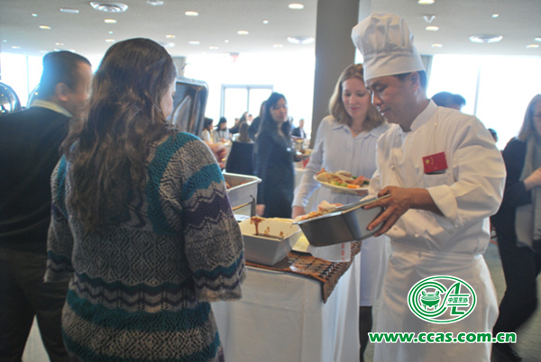在五天的工作中,中外厨师在共同工作与合作过程中也结下了深厚的友谊,他们不仅学习到了联合国餐厅里规范的管理经验,对西餐厨房有了深入的了解,也向美国厨师们传授了一些中餐的烹饪方法。