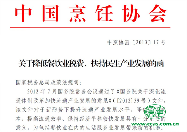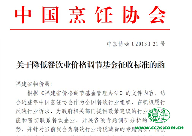 针对当前餐饮行业效益下降明显的严峻形势和餐饮企业税负负担过重的集中矛盾,中国烹饪协会一直努力向国家及地方相关部委反映问题,请求对餐饮行业出台扶持政策,为餐饮行业减负。我会于今年3月7日、7月19日、9月16日、9月18日和9月24日先后向国家发改委、财政部、国税总局、商务部及福建省物价局致函,请求减免征收餐饮行业价格调节基金,得到了有关部门的高度重视与有力支持。
