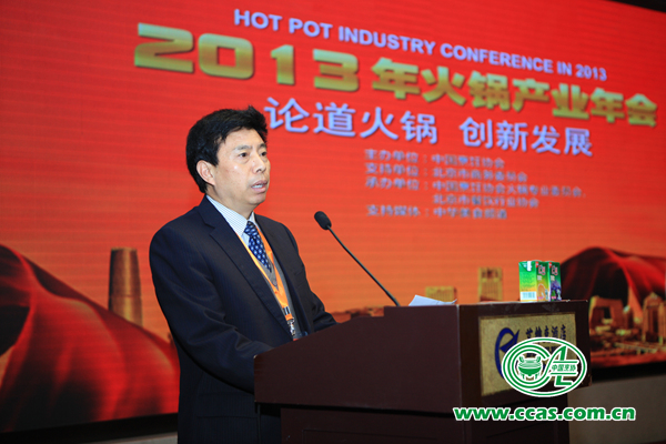 回顾2013年,餐饮行业发展进入罕见的“寒冬”,经营压力骤增,整个行业面临着转型升级的严峻考验。截止第三季度,全国餐饮行业仍然延续缓慢回升的态势。1-9月全国餐饮收入18178亿元,同比增长8.9%,增速比去年同期下降4.3个百分点,其中限额以上餐饮企业收入5842亿元,仍处于负增长状态,下降幅度1.8个百分点。此外,火锅行业还经受着来自“假羊肉”“禽流感”“罂粟壳”等突发事件的多重考验。会上,中国烹饪协会从行业角度出发,以十八届三中全会改革精神为统领,全面盘点2013年火锅产业发展动态,分析预测产业发展趋势,宣贯国家政策法规,推动火锅业健康稳定发展。刘会长在讲话中指出,面对当前行业形式,火锅产业同仁应积极自救,默契配合,抱团取暖,逆势成长,在提升餐饮产品品质、提高餐饮管理水平、加强企业规范自律、引导行业科学发展上下足功夫。坚定不移地贯彻执行党中央的指示精神,坚持不懈地摸索转型发展的道路,为推动火锅行业乃至整个餐饮行业的发展做出贡献。