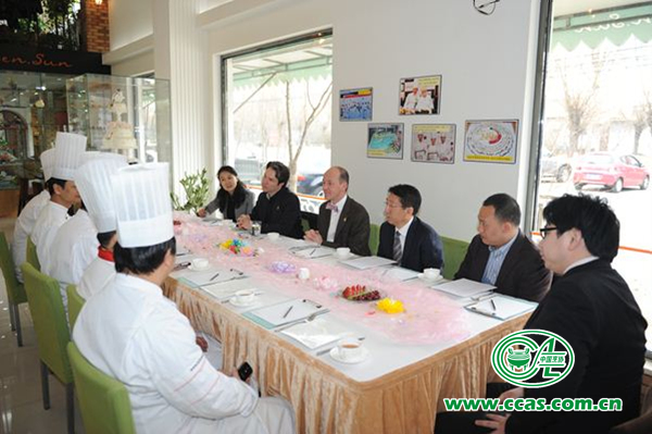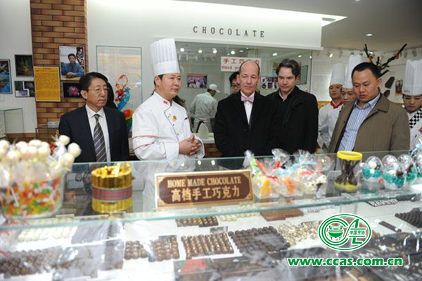 1月24日下午,在京访问的世界厨师联合会主席吉索·盖得曼德森一行在边疆副会长的陪同下,考察了位于北京市朝阳区的北京阳光海伦烘焙培训学校暨曹继桐烘焙艺术馆。