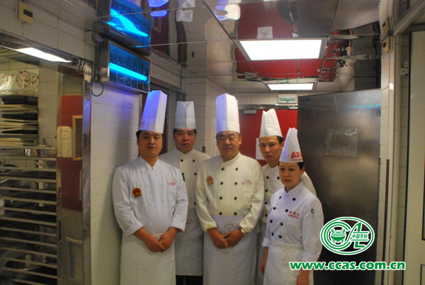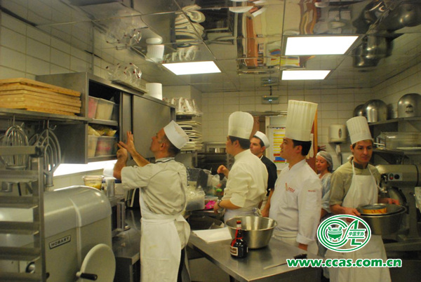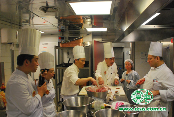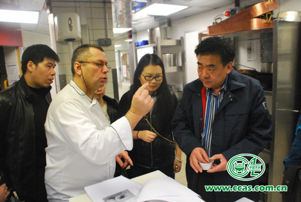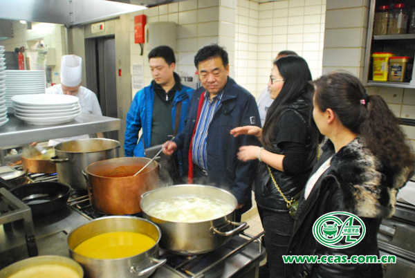 中国美食代表团在巴黎咖啡厅厨房查看设备及厨具情况