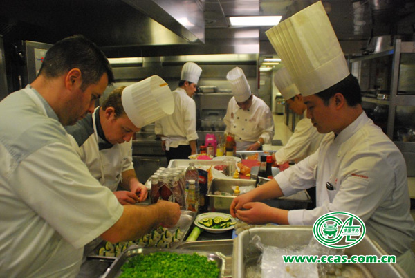 中国厨师与国际名厨协同合作,亲密配合,共同备战