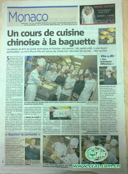 摩纳哥主流媒体大篇幅报道中国大厨赴当地餐饮学校进行教学交流的实况