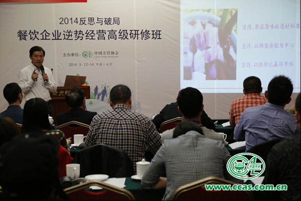 2014年3月12日-14日,反思与破局﹒餐饮企业逆势经营高级研修在北京举行,中国烹饪协会常务副会长兼秘书长冯恩援出席研修活动并作主题报告,来自北京、上海、重庆等16个省市自治区的40家餐饮企业负责人参加学习交流。