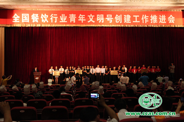 会议宣布4家餐饮行业一线青年集体为全国青年文明号示范创建集体。内蒙古三千浦餐饮公司负责人代表示范创建集体所在企业发言。苏州市七欣天餐饮公司相城店后厨班组负责人代表示范创建集体青年员工宣读倡议书。倡议号召行业青年积极参与创建活动,做诚信经营、服务一流、本领过硬、传播文明的先行者、示范者。倡议号召行业青年传承勤俭节约的传统美德,培育健康环保的餐饮文化,传递文明友善的社会正能量,积极践行和弘扬社会主义核心价值观。团中央城市部负责人、中国烹饪协会负责人就深化创建活动作了动员部署。
