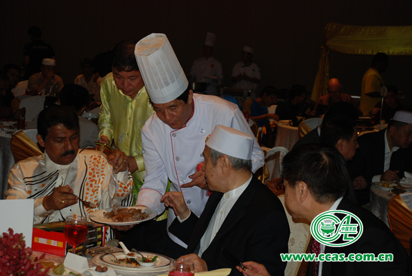 7月4日晚,马来西亚吉隆坡金马皇宫大酒店的小宴会厅灯火辉煌,中国驻马来西亚大使黄惠康设中餐晚宴招待包括马来西亚武装部队司令祖基费利在内的马方政军各界人士,受到高度称赞。这是中国烹饪协会组织的“中国清真美食走进马来西亚”活动的重点内容之一。