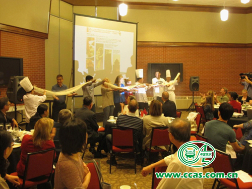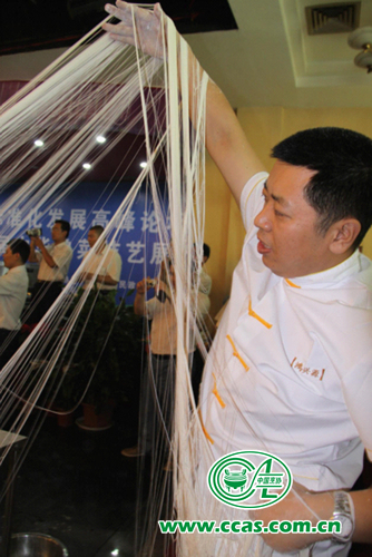 “中国美食精品宴”的现场“花式”拉面表演引得满堂喝彩