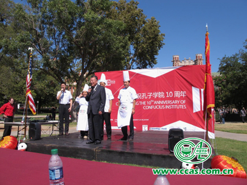 9月22日与23日,中国(山东)美食走进(美墨)孔子学院代表团(以下简称“中国美食代表团”)利用在俄克拉荷马大学庆祝孔子学院成立十周年的契机,在俄大校园连续进行了三场大规模的美食文化推广交流活动,赢得俄大高层、俄大孔院领导、广大师生及周边普通居民的热烈欢迎,成为十周年庆典的最大亮点,取得了轰动性的效果。中国美食以其独有的魅力和亲和力,赢得爆棚的人气。