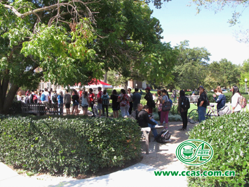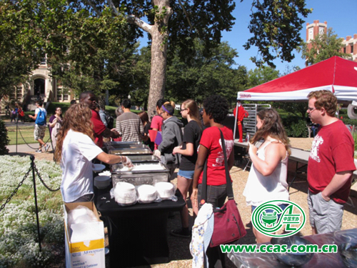 来自美国各地不同肤色的俄大学生排队竞相品尝中国美食