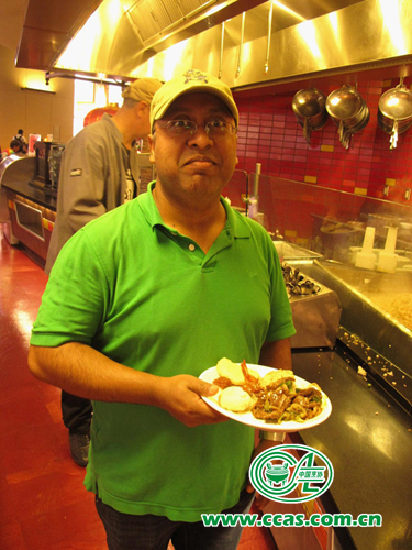 9月22日在俄大校园餐厅举行的“中国美食品鉴会”是此次代表团精心准备的首份送给俄大师生的见面礼,虽然遇到了对美国食品安全规定不熟悉、俄大校园餐厅厨房难以统一协调、语言沟通不畅、中美双方厨师工作习惯及思维差异等许多未曾遇料到的困难,中国美食代表团的三位厨师胡宗强、宋京吉及杨春丽却没有丝毫怨言,全力投入,为22日中午的中国美食品鉴会制作了芝麻虾排、芦笋蛋黄焗虾球、蜜三刀、孔府一品烧饼、椒盐月饼等特色山东美食,吸引了众多师生排队品尝和翘指称赞。由于地处美国腹地,俄大只有很少的中国留学生,他们听说中国美食品尝会在俄大校园餐厅举办,纷纷赶来,有的排队三四次,只为吃到久别的家乡味道。