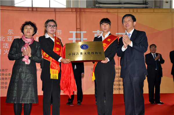 姜俊贤会长与丛红霞厅长为中国吉菜文化博物馆揭牌