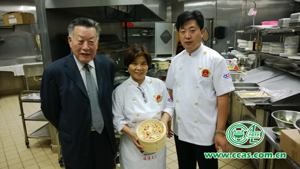 李光璧团长赴厨房慰问正在紧张准备中国美食精品宴的中国厨师