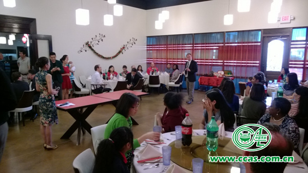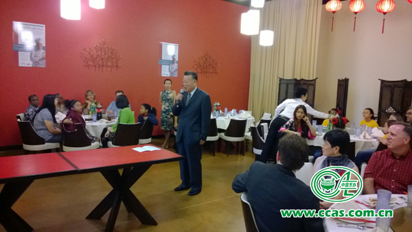 休斯敦独立学区学术办公室主任歌欧先生(Mr. Gohl)发表讲话欢迎各位贵宾前来品尝中国美食