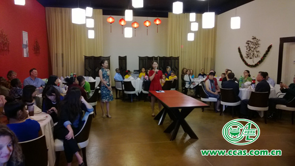 休斯敦独立学区孔院院长王倩倩女士发表讲话,代表孔院全体教职工和学生欢迎中国美食代表团的来访