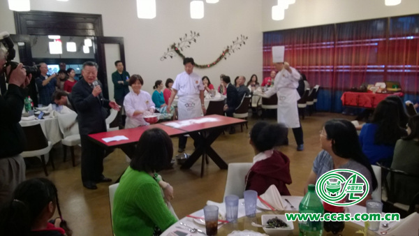 代表团抵达休斯顿稍事休息即前往厨房考察原材料准备、检查灶具,连续两天在厨房准备工作到凌晨两三点钟。功夫不负有心人,在25日的中国美食精品宴上,由代表团胡宗强、宋京吉、杨春丽三位厨师联手奉上的精品中国鲁菜美食得到贵宾们和参加活动的中美学生的一致好评。学区学术办公室主任歌欧先生、学区孔院院长王倩倩女士及教职员工、当地杰出华人华侨等百余位嘉宾出席了此次晚宴,中国美食受到热烈欢迎和高度赞誉。