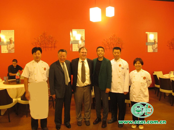 晚宴后,休斯敦独立学区学术办公室主任歌欧先生(Mr. Gohl)与中国美食代表团合影留念(左一:胡宗强;左二:李光璧团长;左三:歌欧先生;左四:赵孝国副团长;左五:宋京吉;左六:杨春丽)