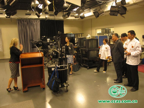 中国美食代表团参观休斯敦独立学区总部电视台现代化的摄影棚