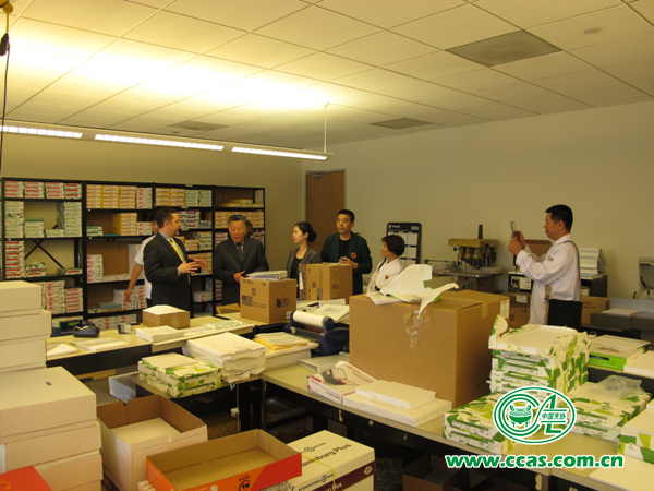 中国美食代表团参观休斯敦独立学区现代化的印刷厂并听取负责人的介绍