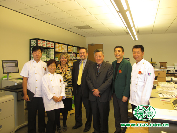 中国美食代表团参观休斯敦独立学区总部食堂并与总厨合影留念