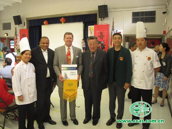 中国美食代表团向学区主席托斯提•莫尔先生赠送了中国烹饪协会会旗及《中国美食走进联合国活动画册》