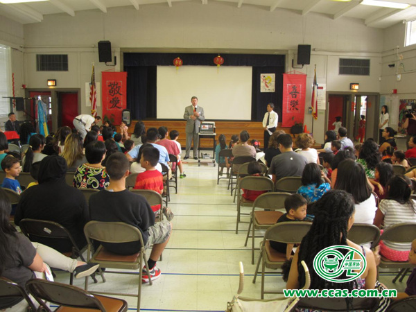 休斯敦独立学区理事会主席托斯提•莫尔先生、学区孔院院长王倩倩、学区高级行政经理查克•沃宁哲、学生家长等200多人出席了当天的活动。莫尔先生在活动开始前发表致辞,积极评价由中国国家汉办派遣的来自中国的中文老师在中文沉浸学校进行的高质量的教学活动,并表示非常荣幸有机会接待中国美食代表团的来访,非常期待中国大厨们即将展示的美食绝技表演。李光璧团长也受邀代表中国烹饪协会发表了致辞,并向现场的来宾介绍了三位中国厨师及由他们倾力制作的中国美食,希望家长们、小朋友们能够喜欢。