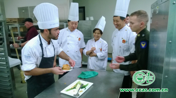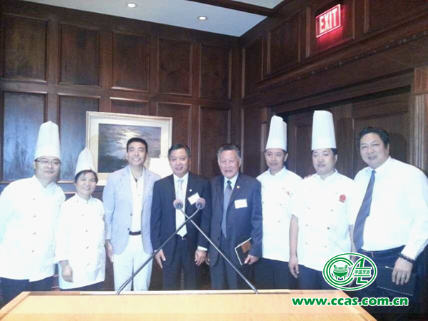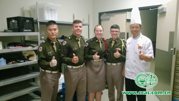 为了让中国美食在此次盛会上闪亮登场,中国美食代表团胡宗强、宋京吉、杨春丽三位厨师一大早就赶往大学学生餐厅,与等候在那里的美方厨师互相配合、共同努力开始晚宴的准备工作。中国厨师设计制作了三色水饺、陈皮拌白菜心、孔府蒸塌龙鱼、清汤玉参澳带、盘丝饼、孔家五仁酥等精品鲁菜菜肴,在宴会上博得嘉宾一片好评。