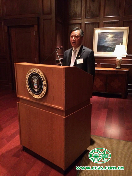 德州农工大学副校长罗伯特·比塞在招待晚宴上发表致辞,感谢孔子学院进一步丰富得州农工大学校园文化