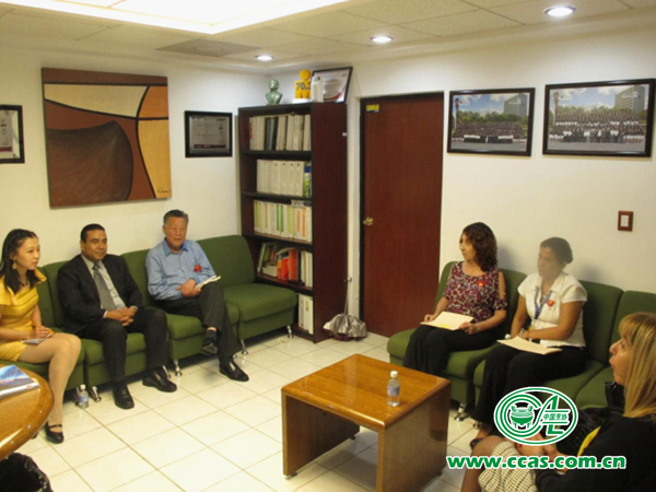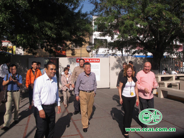 在帕博洛·利瓦斯工业与技术专科学院,中国美食代表团同样受到院长莫宜斯·莫利那·雷蒙斯先生及其他学院领导的热情欢迎。雷蒙斯院长首先带领中国美食代表团参观了自己的办公室,并向代表团详细介绍了学院的学科设置、学院规模、教学理念等相关情况,该校隶属于新莱昂自治大学,拥有烹饪、美容美发、电脑、外语、时装设计等多个专业,学生总人数将近3000。随后,雷蒙斯院长又带领代表团参观了各专业教室,这里理论学习与实践并重,非常注重学生们的动手实践能力,学生都在活泼的气氛当中愉快地学习。