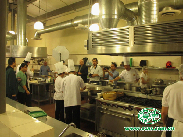 新莱昂自治大学学术委会员主任艾玛·迈勒楚女士及孔子学院院长萨拉·艾丽西亚·安西拉·阿莱琪格女士在李光璧团长陪同下观看中国厨师工作