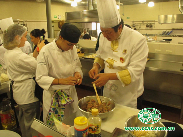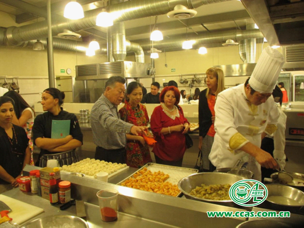 中国厨师在两所学校制作了盘丝饼、煎饺、椒盐月饼、葱油饼、孔府小桃酥、豆沙包、芦笋蛋黄焗虾球、红酒烤鸡翅等中国鲁菜精品美食,并现场进行了花式拉面表演,赢得一片赞誉。中国大厨精湛的烹饪技艺使墨西哥厨师专业师生们大开眼界。