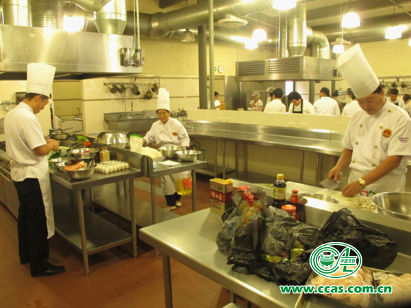 在埃斯库埃拉职业厨师培训学校,中国厨师进行美食展演准备工作