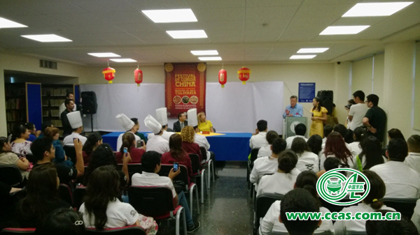 在中国美食节开幕式上,萨拉院长及雷蒙斯院长分别致辞,热烈祝贺这一重要活动的举办,对于中国美食代表团能够不远万里把中国美食带到墨西哥表示感谢与敬意。李光璧团长也致辞,感谢两院为此次活动所做的精心组织工作,并鼓励在坐的各位学子一定要好好学习,将来到中国山东孔子故乡来留学。开幕式后,帕博洛·利瓦斯工业与技术专科学院的师生、当地居民品尝了中国大厨制作的精品美食。