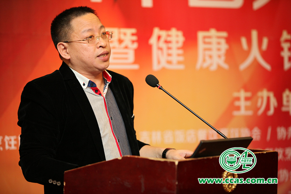 在专家讲演中,餐饮专家吴坚对中国火锅行业的发展现状和趋势进行了分析和预测,他指出,在餐饮市场企稳回升,回归理性的大背景下,火锅业态发展强劲,是餐饮市场中呈正增长的业态。加盟经营为首选方式、经营扩张步伐放缓、海外市场逐渐开拓,门店数量递增、自助火锅大行其道、新生力量异军突起是当前火锅业态发展所呈现的特点。同时,火锅业态存在的隐患也不容忽视:其一,“一窝蜂”盲目发展的隐忧。火锅业态发展势头最猛,但撤出市场、关闭门店的企业也居多。其二,同质化的隐忧。创新商业模式、塑造品牌,提升核心竞争力,成为在火锅业态中立于不败之地的关键。其三,食品安全的隐忧。这是企业生存与发展的根本,需要引起企业的高度重视。其四,经营能力的隐忧。往往表现出对市场定位的缺失以及目标顾客选择的茫然。他在对火锅行业发展趋势的分析中,强调指出,需要突破三个层面的问题,才能推动行业健康持续发展:一是要创新赢利模式,细分市场,把握小众化市场的商机,形成可持续性发展的核心竞争力;树立“顾客为王”的思维,使企业始终与顾客走在一起。二是要突破利润的瓶颈,标准化、专卖化、精细化、智能化、专业化发展。三是注重食品安全,对火锅食材以及火锅门店设施安全、后厨管理、组织机构设置等进行全面严格管控;集中采购、集中生产、集中配送,通过中央厨房的方式管控整个生产过程;从源头到终端的全产业链控制食品安全。