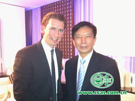 10月19日晚,应奥地利驻华大使的邀请,姜俊贤会长出席了奥地利农业部长商务考察团晚宴。奥地利联邦农林、环境和水利部部长安德烈·鲁佩莱希特、外交部长、驻华大使馆商务参赞马丁·格莱茨、科技参赞比瑞格特·默尔、商务专员维拉·迈尔及奥地利知名肉类生产商出席了晚宴,北京首都农业集团有限公司等有关企业负责人出席了晚宴。