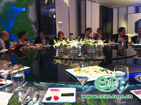 晚宴在北京大董餐饮工体店进行,席间,奥地利贵宾对大董意境菜赞不绝口,对现代中餐的发展水平叹为观止,他们纷纷表示,希望有机会能再来中国,更多地了解中国餐饮市场、肉类市场的发展动向,拉动两国间的经贸往来。姜会长表示,希望奥地利商务参赞能够协助奥地利餐饮企业在北京开设特色餐厅,并与中国烹饪协会合作,共同开发奥地利餐饮业在中国的市场。
