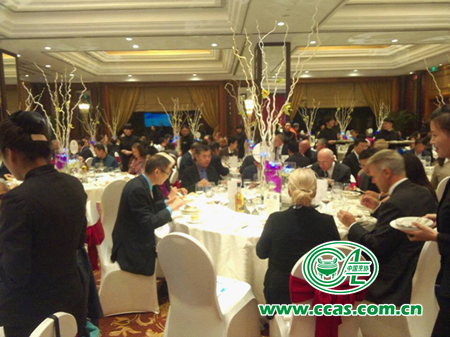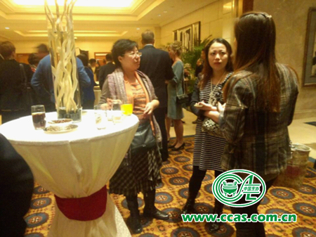 晚宴开始前的鸡尾酒会上,出席宴会的企业代表们自由交流、相互了解,对市场需求、原料价格等问题交换意见和看法。中国烹饪协会国际部、西餐专委会、大型活动部代表向挪威王国驻华大使馆公使衔参赞丽莎女士、挪威海产局负责人等就协会近期开展的各项工作进展进行了详细的介绍。
