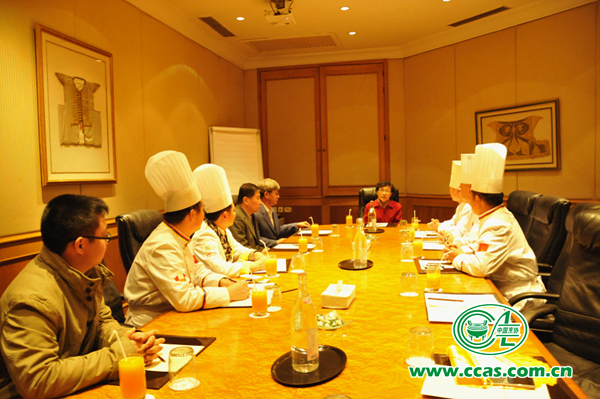 听了大使的介绍,中国美食展演团团员们非常激动,纷纷表示将全力以赴、克服一切困难把活动搞好,把最好的中国美食带给突尼斯人民,请大使放心。团员们提出希望,在大使馆工作方便时赴使馆为长期坚守在突尼斯的中国外交官们制作一顿家乡饭菜,以表示中国餐饮界对祖国外交官的敬佩之情,边大使愉快地答应了团员们的请求。中国烹饪协会代表在发言中向大使转达了协会领导对此次活动的关注和支持,表示协会近年来组织了一系列的对外美食文化交流活动,取得了可喜的成果,得到政府主管部门的认可和支持。我们非常愿意为国家的文化交流活动尽一份绵薄之力,希望今后能在大使馆的支持下再次组团访问突尼斯组织相关活动。