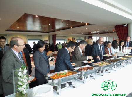 在中国美食营造欢快的气氛中,开幕式各项议程顺利进行。常驻团张秀琴大使亲自主持活动并发表了热情洋溢的讲话,她表示:中国饮食文化博大精深,其丰富、和谐、统一、多样性,彰显出中华民族的历史渊源与文化理念。中国饮食文化浓郁的中华文化特色和丰厚的文化内涵,也成为中华民族文明的一项标志,对世界了解中国有着重要的借鉴和启示意义。此次美食展示活动,呈现绚丽多彩的中国民族美食风情,让大家直观的感受中国美食,更深刻体会中国文化的丰富多彩。