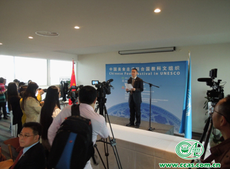 边疆副会长在仪式上致辞,他首先表示非常高兴能够邀请到大家在春天的巴黎,一起走进联合国教科文组织总部,品尝中国味道。