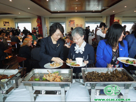 此次活动是联合国教科文组织总部紧张的午餐时间进行,原计划邀请100位贵宾,但活动开始前一小时,已经人头攒动。接到邀请函及得知活动信息的各国外交官蜂拥而至,很多人还带着朋友一起参加。由于宴会厅场地有限,只能提供100个座位,许多嘉宾只能站着用餐,有的就干脆坐在窗台上品尝中国美食,但丝毫不影响大家对美食的热情,活动现场气氛热烈。