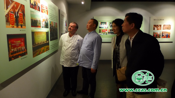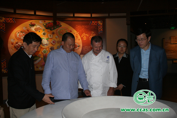当天下午、考察团一行在绵绵细雨中参观了中国淮扬菜博物馆。通过对扬州市的历史和发展变迁的介绍,里克主席表示对在中国具有重要地位的淮阳菜有了比较直观的了解,看到一件件仿真的菜品模型和淮扬菜代表作品的视频介绍,里克主席对淮阳菜有了更加深刻的感悟。他表示,以前他只知道扬州炒饭是一道中国的主食,现在他才知道扬州是扬州炒饭的发源地,正宗的扬州炒饭与海外不同地区的扬州炒饭的有着很大的差异。