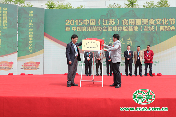 会上,中国食用菌协会授予江苏省丰收大地为中国食用菌协会健康体验基地,中国食用菌协会常务副会长高茂林及丰收大地负责人韩志勇书记共同揭牌。