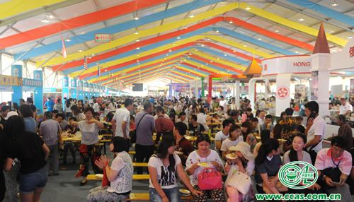 本届沙滩国际美食节主体会场是搭建在海滨沙滩上的巨型大棚,这是目前国内最大的沙滩单体欧式篷,篷长205米,篷宽40米,篷高14米,占地面积8200平米,同时容纳3000人一起品尝国际美食、畅饮各国美酒、观赏世界歌舞表演,还伴有夜景沙滩灯光秀等精彩活动。在美食节主体会场里,一字摆开俄罗斯、德国、美国、泰国、越南、意大利等20多个国家和地区的上千种美食、美酒,还有上百家港台名吃和国内名优餐饮品牌,以及多元化发展的正大创新食品,载满各种美食的欧式风情的国际美食号小火车等等,可谓目不暇接,百滋百味,让人大饱口福。连日来,无数秦皇岛当地市民和国内外游客蜂拥而入,尽情享受这一国际美食大餐。