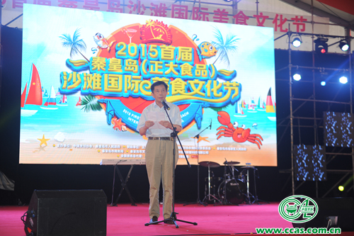 7月2日晚,2015首届秦皇岛沙滩国际美食文化节启动仪式在金梦港湾的沙滩国际美食文化节大棚里举行。本次沙滩国际美食文化节由中国烹饪协会、秦皇岛市人民政府共同主办,正大集团鼎力支持,中国烹饪协会国际美食委员会、秦皇岛市商务局、文广新局和海港区人民政府联合承办。在启动仪式上,中国烹饪协会会长姜俊贤、正大集团副董事长吕攀分别发表了热情致辞,在秦皇岛市委副书记、市长张瑞书宣布2015首届秦皇岛沙滩国际美食文化节开幕的口令声中,秦皇岛市5位劳模、英模、先进人物代表共同触摸启动球,拉开了本次国际美食文化节的序幕。随后,姜俊贤会长率领群众代表一起切开了16米长的巨型匹萨饼,开启了第一个国际美食大餐。