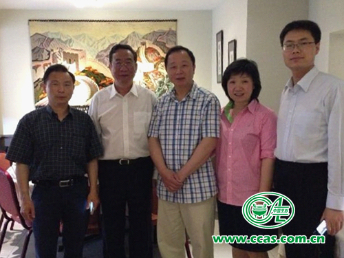 冯恩援副会长一行与张立荣公使(右二)、李建民公参(右一)在中国驻欧盟使团合影留念