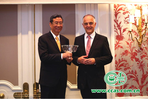 雷诺特专业厨师培训学校校长Bertrand LEBUGLE先生与冯恩援副会长互赠礼物