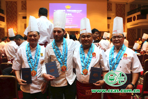 法国国际烹饪协会主席王加清、常务副主席陈建斌为获奖选手颁奖