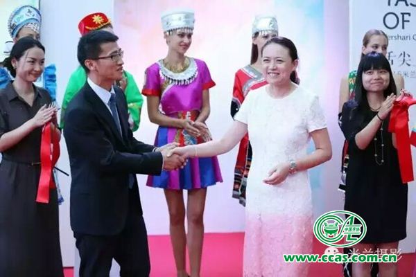 中国馆长雷红与耶里夏丽董事长杨剑同贺开幕