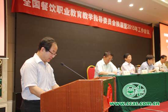 教育部职业教育与成人教育司张磊副处长在会上讲话,代表教育部对餐饮行指委工作给予了肯定,对中国烹协对餐饮行指委工作的大力支持和直接领导表示感谢,并介绍了教育部职成司2015年工作重点工作,对餐饮行指委新一届工作班子提出几点希望。他指出:餐饮行指委要认真学习宣传贯彻落实好国务院关于现代职业教育的决定和2015全国职业教育会议精神,充分发挥自身的工作职能,积极推进中、高职院校的有效衔接。要明确职责,加强自身建设,积极做好调研、统筹、规划工作;要把握形势,提升指导能力,深入了解行业对人才的需求,科学分析教学中存在的问题,做到指导有力到位;要深化改革,提高教学质量,创新工作载体,指导院校创新人才培养模式。